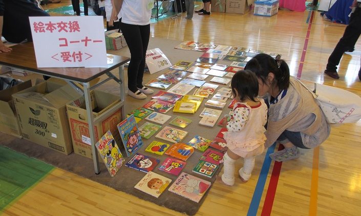 絵本交換会もあり絵本を持参した数だけ好きな絵本と交換もできますよ。