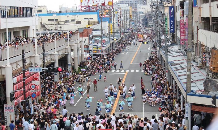 追浜駅前の追浜銀座通り商店街が歩行者天国となりリオ・カーニバル、民謡踊り、神輿・山車の流し、おっぱまソーラン、沖縄エイサー、大道芸など楽しいイベント盛りだくさん。