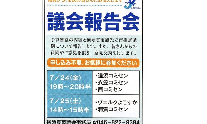改選の関係で少し時期が遅くなっていますが、今年度予算や横須賀市観光立市推進条例について報告します。