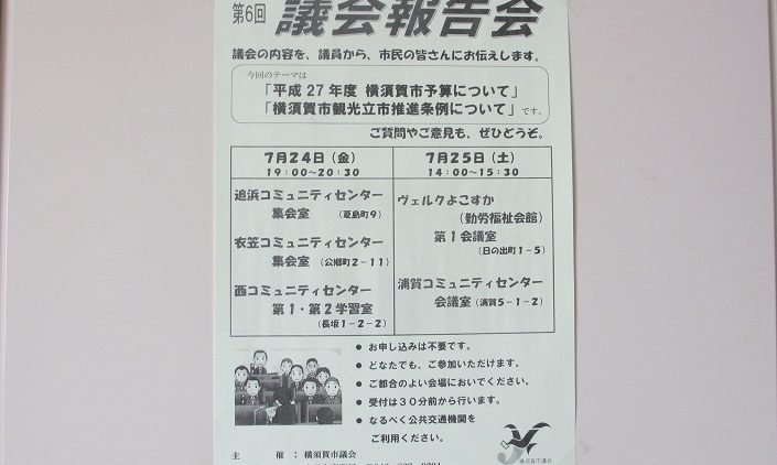 きょう7月24日(金)と明日7月25日(土)は横須賀市議会議会報告会を開催します。