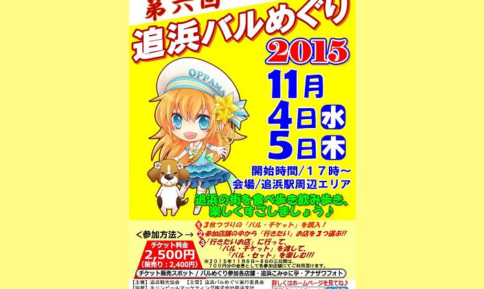 明日11月4日(水)、5日(木)の2日間、追浜において「第6回追浜バルめぐり」が開催されます。