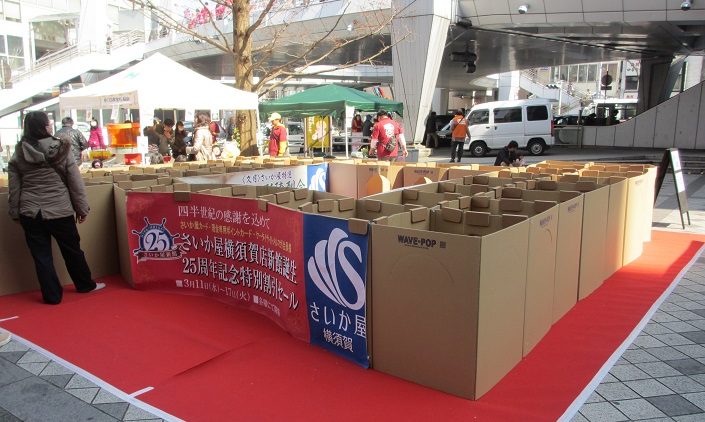 Yデッキ下イベント広場では、恒例の段ボール迷路(3/21)やステージイベント(和太鼓演奏・ダンスステージ)(3/21)が…