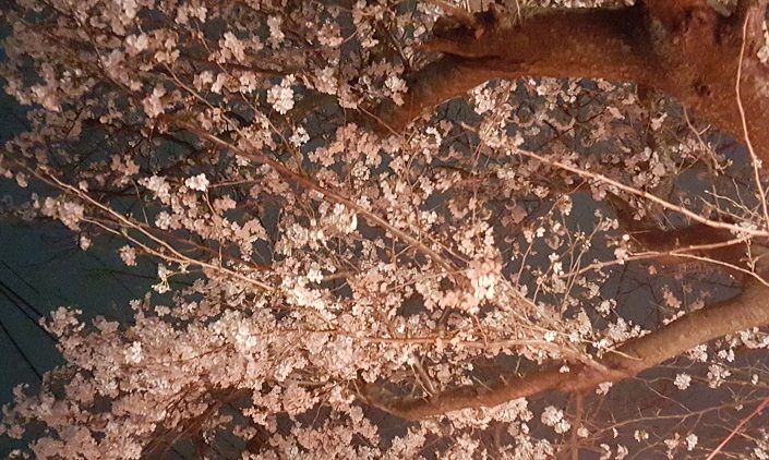 到着時はまだ少し明るかったのですが、帰る頃には暗くなり、ライトアップした桜がとてもきれいです。