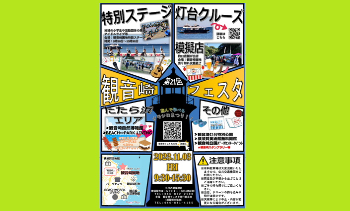 こんばんは。西郷宗範です。11月3日(金祝)9時30分から15時30分まで観音崎園地(県…