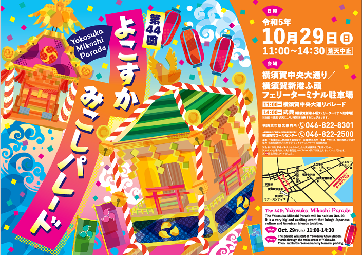 こんばんは。西郷宗範です。10月20日(日)10時30分から第43回よこすかみこしパレー…