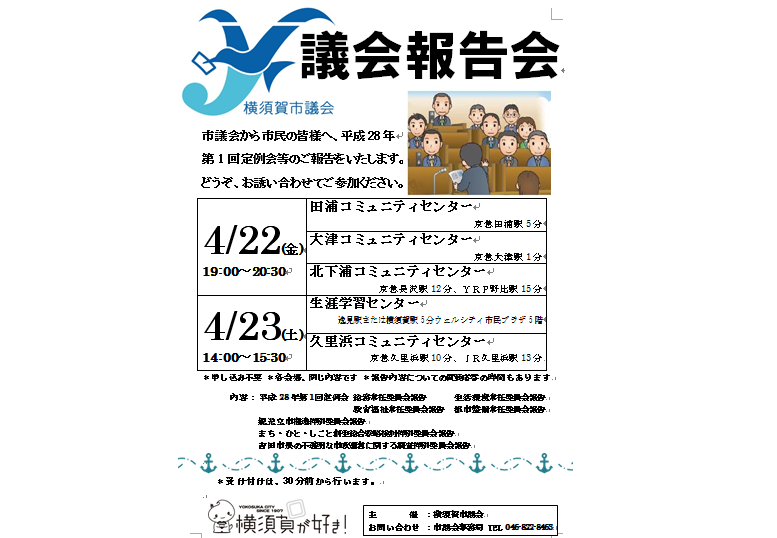 こんにちは。西郷宗範です。 4月22日(金)および23日(土)に横須賀市議会主催の議会報…