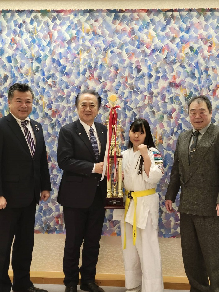 こんばんは。西郷宗範です。きょうは昨年も市長表敬したの幸栄会日本格闘空手飛馬道場に所属す…