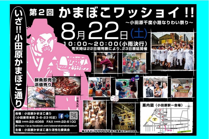 こんにちは。西郷宗範です。 きょうは小田原の情報です。 8月22日(土)10時から20…