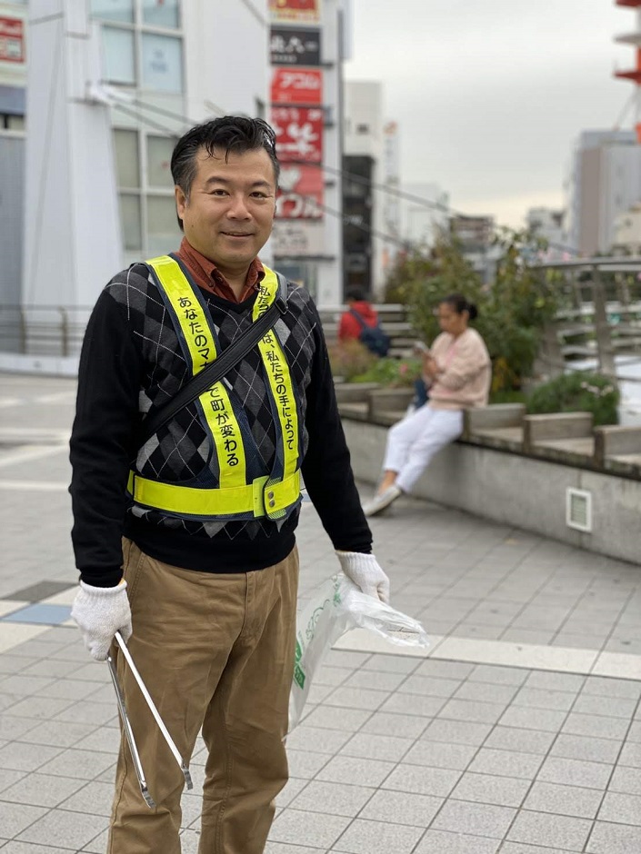 こんばんは。西郷宗範です。きょうは朝からごみ拾い…横須賀中央駅からうみかぜ公園までの道の…