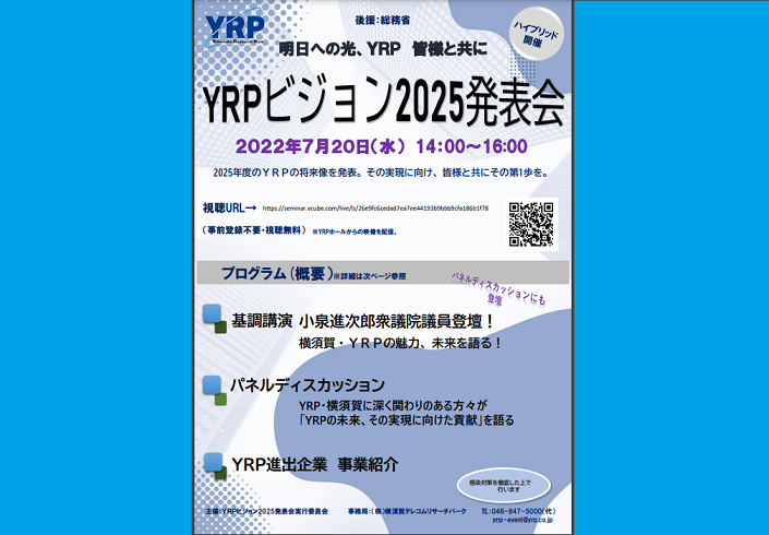 こんばんは。西郷宗範です。開設から25年となる横須賀リサーチパークは、開設から25年を迎…